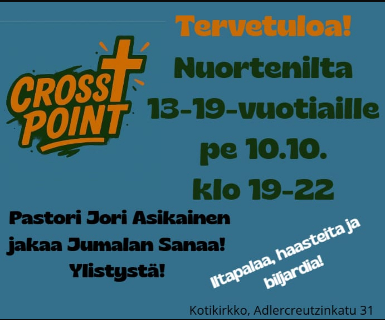 Tule mukaan iltaan, jossa on:🎉 Mahtavaa seuraa🎭 Hauskoja haasteita ja ohjelmaa🍕 Herkullista ja ilmaista iltapalaa😂 Naurua, yhteyttä ja unohtumattomia hetkiä. Seurakunnan oma pastori Jori Asikainen auttaa löytämään Raamatusta ajankohtaista syvyyttä ja sisältöä.